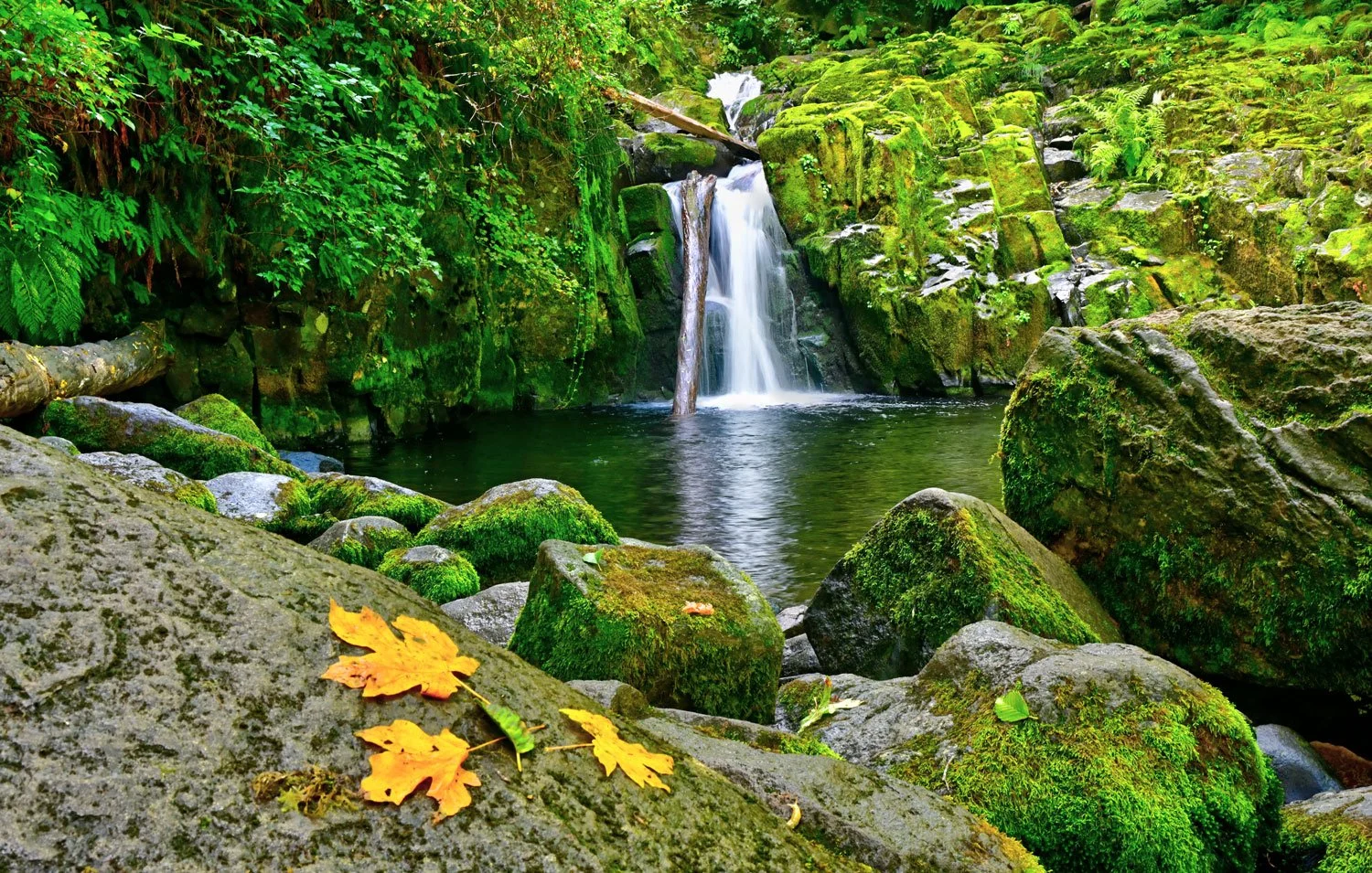 Some may call it “soul-searching” or “self-scrutiny.” A scene like this beckons one to such quiet introspection. This lush, Oregon coastal scene of the Sweet Creek waterfall cascading into a stone-line pool surrounded by verdant vegetation has a way of calming the soul and removing all external distractions. This was the terminus of a short hike outside of Mapleton, Oregon that led us through a canopy of moss-covered trees and lush ferns lining the trail. Some cooler morning temperatures had prompted the first leaves of fall to change color and begin to line the pool. The gentle waterfall issues an inaudible call to sit still beside the waters. The forest, birds, gentle breezes and tumbling stream, provide a balm that leads to a time of “introspection.”
